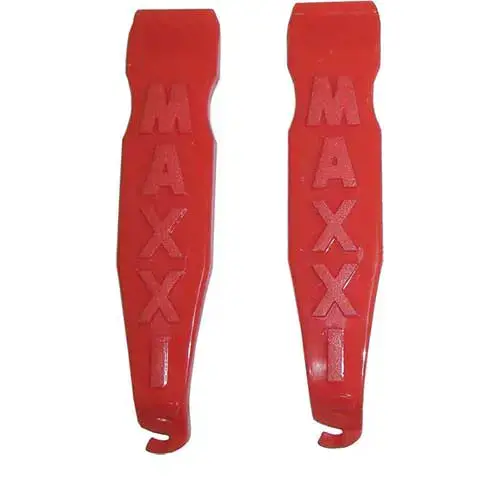 Reifenheber-Set von MAXXIS, robust und langlebig, speziell für den Einsatz bei MTB- und Downhillreifen. Bestehend aus zwei roten Reifenhebern